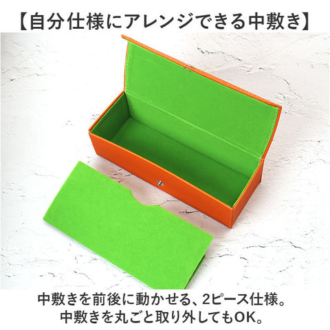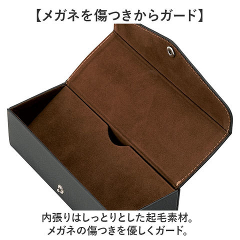 | 商品説明 | 【大切なメガネをすっきり収納】持ち歩きも保管もこれ1つ♪色んな使い方ができる、セミハードの「2ピースメガネケース」。【いつでもどこでも開け閉め簡単】開口部はスナップボタン式。サクッと開いて、閉じれば中身のこぼれ落ちをガード。【型崩れしないボックスケース】バッグの中に入れても形状を保ち、安定した状態で持ち運びOK。携帯しやすい軽量設計。【自分仕様にアレンジできる中敷き】中敷きを前後に動かせる、2ピース仕様。中敷きを丸ごと取り外してもOK。【メガネを2つ収納したり使い分け】中敷きを付けてメガネを2個、外して大きめのサングラスを。メガネと一緒に小物の収納も。【メガネを傷つきからガード】内張りはしっとりとした起毛素材。メガネの傷つきを優しくガード。【使う人を選ばないシンプルデザイン】落ち着きのあるワンカラーに、フラップ部分のステッチがアクセント!ギフトにもおすすめ。 |