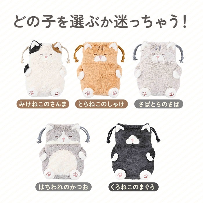 | 商品説明 | 【小物を収納、可愛く持ち歩ける相棒】お気に入りの子を選んで、一緒にお出掛け。愛らしい姿がたまらない「ねこ肯定感 巾着」。【ねこ肯定感でメンタル面をサポート】ねこ肯定感とは、かわいいね!すごいね!と褒めることで得られる、幸せな気持ちや心の安定♪【褒められたり可愛がられて幸せ太り】かわいいと沢山言われすぎて、コロコロ・ポテポテボディに。癒やしのフォルムに心もほっこり☆【ずっと触れていたくなる心地よさ】ふんわり滑らかな毛並み。ぬいぐるみのような手触りがやみつきに!【キュッと絞って飛び出しをガード】ヒモで口を絞れる巾着タイプ。出し入れしやすく、中身のこぼれ落ちもガード。【小物をすっきりひとまとめ】エチケットグッズやコスメなど、細々した物を収納。バッグの中で迷子知らず◎【たくさん詰めるとボリュームアップ】伸縮生地を使用。中に小物を詰めるほど、チャームポイントのお腹がどーんと登場!?【手洗いできてお手入れラクラク】汚れが気になったら、自宅で手洗い可能。いつも清潔をキープできるのが嬉しい!【自分用にもギフトにもおすすめ】後ろ姿もにゃんとも可愛い巾着。ねこさん好きな方への贈り物にもおすすめ。 |