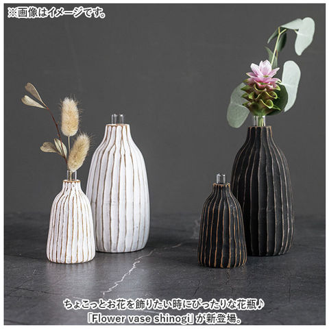 | 商品説明 | ちょこっとお花を飾りたい時にぴったりな花瓶♪「Flower vase shinogi」が新登場。【シンプルなデザイン】お花を引き立て、インテリアにも馴染む!風合いのあるデザインで、どんなテイストのお部屋にも素敵にマッチ◎【一輪挿しに最適】中に試験管のようなガラスベースがセットされた花瓶。ガラスベースを取り出してお水を入れ、お花を飾ることが可能。【場所を選ばないサイズ感】コンパクトサイズなので、棚の上や洗面所、玄関などの省スペースエリアにも!小さな空間に彩りをプラス♪【お花を身近に】お水を入れて生花をいけるのはもちろん、ドライフラワーやアーティフィシャルフラワーを飾ってもOK。【選べる2カラー】お好みに合わせてチョイス!お部屋ごとに異なるカラーを使うのもおすすめ。 |