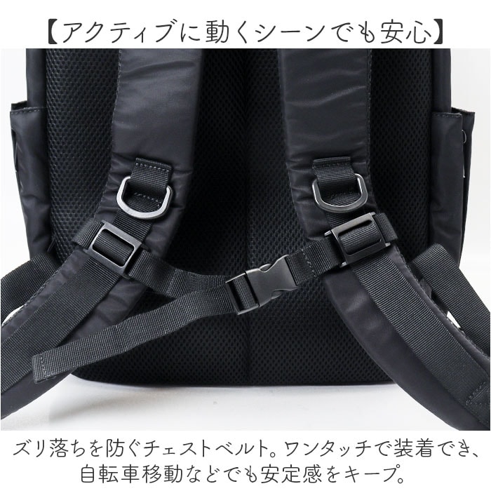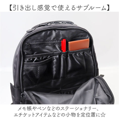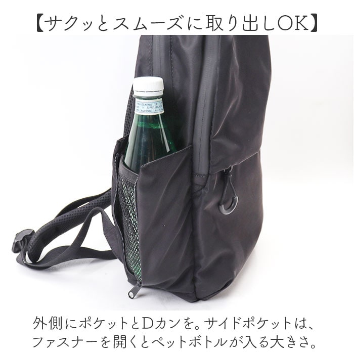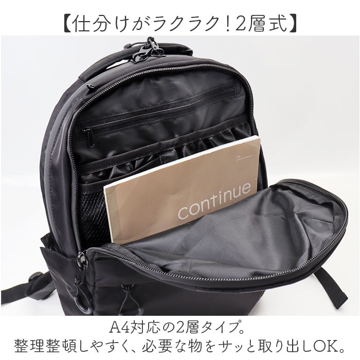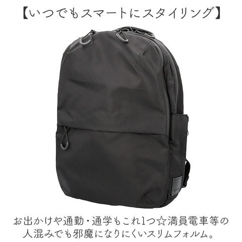 | 商品説明 | 【お出かけの相棒にぴったり】色んなシーンでヘビロテ間違いなし☆A4対応の「撥水生地多機能Backpack」が新登場。【いつでもスマートにスタイリング】お出かけや通勤・通学もこれ1つ☆満員電車等の人混みでも邪魔になりにくいスリムフォルム。【仕分けがラクラク!2層式】A4対応の2層タイプ。整理整頓しやすく、必要な物をサッと取り出しOK。【ガバっと開くダブルファスナー】共に左右どちらからもオープン!出し入れしやすく、ファスナーを閉じればプライバシーも確保◎【たっぷり収納できるメインルーム】程よくマチを設け、着替えやポーチ類もIN。複数のポケット付きで、13インチのPC対応。【引き出し感覚で使えるサブルーム】メモ帳やペンなどのステーショナリー、エチケットアイテムなどの小物を定位置に☆【サクッとスムーズに取り出しOK】外側にポケットとDカンを。サイドポケットは、ファスナーを開くとペットボトルが入る大きさ。【負担をかけず背負い心地快適】軽やかで背面とショルダーベルトには、クッション性を。どちらもムレにくいメッシュ仕様。【アクティブに動くシーンでも安心】ズリ落ちを防ぐチェストベルト。ワンタッチで装着でき、自転車移動などでも安定感をキープ。【ちょっとの雨なら大丈夫】汚れや水滴を弾きやすい撥水加工&止水ファスナー。お手入れも拭き取るだけ。(※)完全防水ではありません。【シンプルなユニセックスデザイン】すっきりとした仕上がりに、使う人を選ばないカラー。家族でお揃いやシェアもおすすめ☆【ポケット仕様】メインルーム:クッションポケット×1、オープンポケット×1、面ファスナーポケット×2サブルーム:オープンポケット×4、ペンポケット×2、メッシュポケット×1前面:ファスナーポケット×1サイド:オープンポケット×2(サイドファスナー付き内側メッシュ仕様)上部:ファスナーポケット×1 |