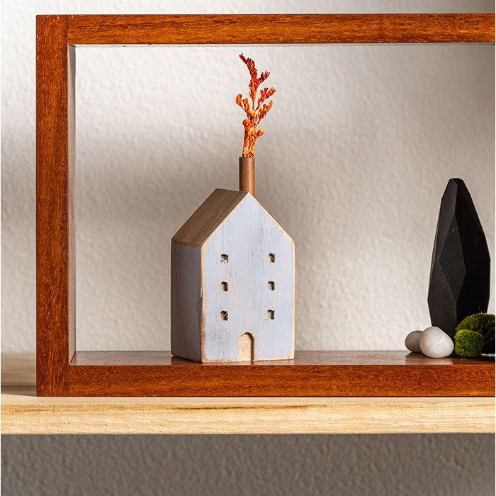 | 商品説明 | 【キュートなお家型の一輪挿し】ちょこっとお花を飾りたい時にぴったり。「Flower house with chimney」。【一輪の花を可愛く飾る】えんとつ部分にドライフラワーを挿して飾ればお部屋のアクセントに♪【置くだけでも素敵】お花を飾らないときは煙突を取り外すこともできて、木のお家の置物としても楽しめる◎【並べても可愛い】並べて飾ったり、お部屋のいたるところに1つずつ置くのもおすすめ!【ナチュラルな風合いが魅力】木目を生かしたチーク材ならではの表情豊かな仕上がりで、温かみのあるインテリアに〇【端材を活かした製作方法】資源を大切にしたエコなものづくりが魅力的。※他の商品を作る際に出てくる端材を材料にしているため、その端材の表情(節目や穴)、色の濃淡の差などをなるべく生かすようにした商品です。よってひとつひとつ表情が違います。 |