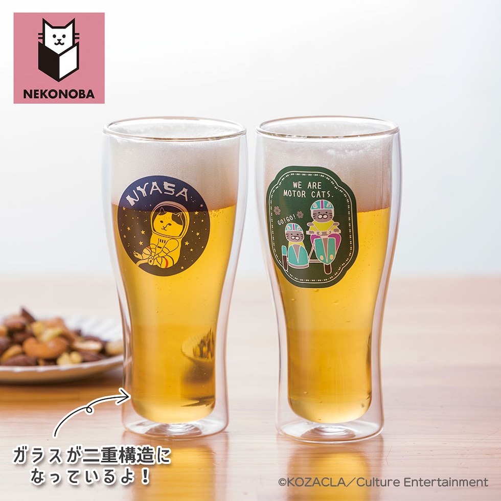 商品名NEKONOBA ダブルウォールガラスビアグラス MOTOR