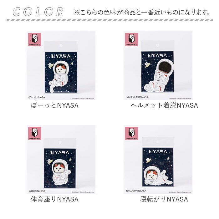 | サイズ | [ぼーっとNYASA]90×45×0.5mm [ヘルメット着脱NYASA]90×47×0.5mm [体育座りNYASA]65×48×0.5mm [寝転がりNYASA]47×73×0.5mm |