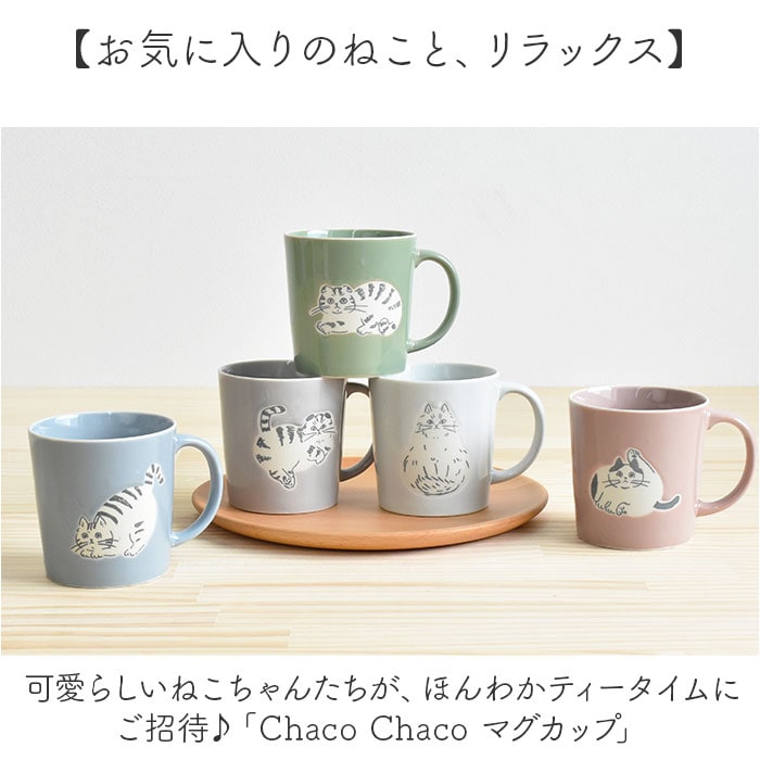 | 商品説明 | 【お気に入りのねこと、リラックス】可愛らしいねこちゃんたちが、ほんわかティータイムにご招待♪「Chaco Chaco マグカップ」【Chaco Chacoオリジナルデザイン】淡いくすみカラーの釉薬に、手書き風の猫を優しいタッチで描きだした美濃焼のシンプルマグ。【保温性の高いセラミック製】丈夫で保温性の高いセラミック製(磁器)のカップなので、コーヒーなど暖かい飲み物にオススメ。【つるりと滑らかな口当たり】カップ表面を艶やかな釉薬で仕上げてあるため、手のひらにつるりと心地よく、口当たりも滑らか。【電子レンジでの温めOK!】飲み物が冷めてしまったら、電子レンジでいつでも温めなおせるのが嬉しいポイント。【サッと洗えて、お手入れ楽ちん】耐熱性の高い磁器製だから食洗器での洗浄もOK!茶渋もスポンジでサッとこすってお手入れ簡単!【飲み物がたっぷり注げるサイズ感】家族や気の置けない仲間とのティータイムに。少なすぎず多すぎないちょうどいい容量300mlサイズ。【オフィスのデスクでも安心】どっしりと程よい重みで安定感があり、飲み物をこぼす心配が少なく、オフィスのデスクでも安心。【安心のMade in Japan製品】日本国内で丁寧に製造・塗装までを手掛けた、安心感のあるメイド・イン・ジャパン製品。【ちょっとした贈り物に最適】カップと同じポーズの猫ラベル付きクラフトボックス入りで、猫好きさんへのギフトにぴったり。【どのねこちゃんがお気に入り?】愛嬌あるポーズときょとんとこちらを見つめる表情が可愛い。色違いで揃えれば、食卓がたちまちねこ端会議に。 |
