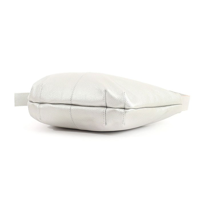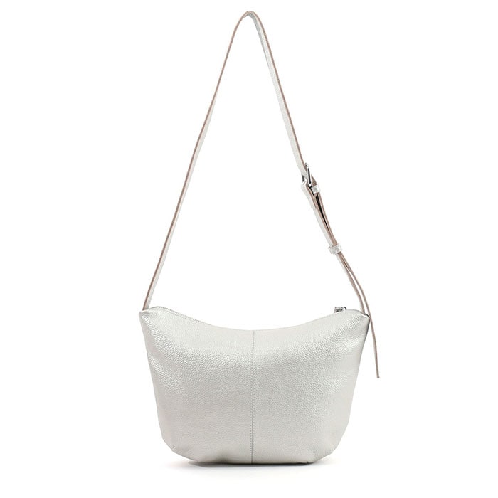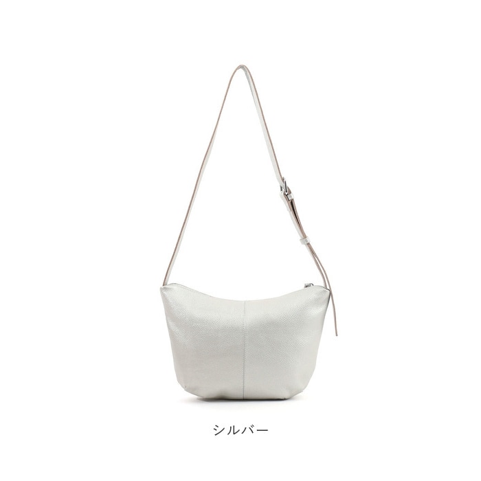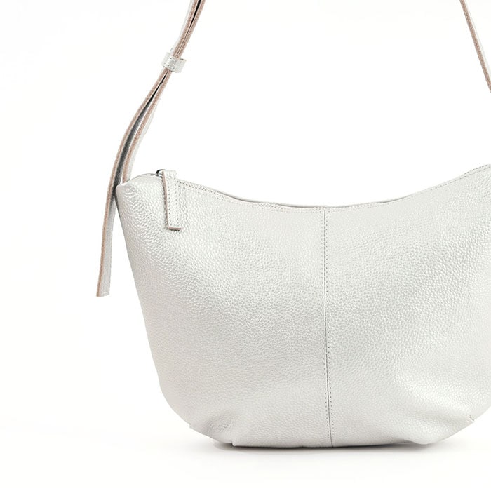 COOCO シュリンクレザーハーフムーンショルダーバッグ【シルバー】
