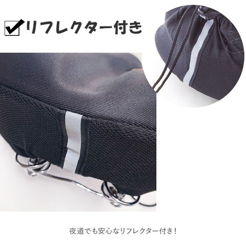 | 商品説明 | 大型サドルにも、電動アシスト自転車にも装着可能!座り心地を大幅にグレードアップしたGEL入りチャリCAP登場♪夜道でも安心なリフレクター付きのサドルカバーは、GELが入ってふかふか★まるでファーストクラスの乗り心地。長時間乗ってもお尻が痛くなりにくい♪そのクッション性はぷにぷにで思わず触りたくなる心地よさ★ドローコードがついているので、サドルにしっかり固定!長時間乗っていてお尻が痛い…なんて苦痛はさようなら!快適自転車ライフを満喫♪ |
