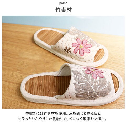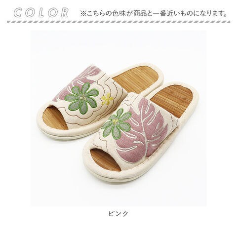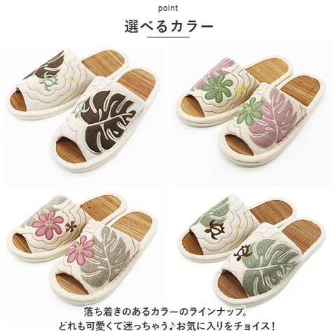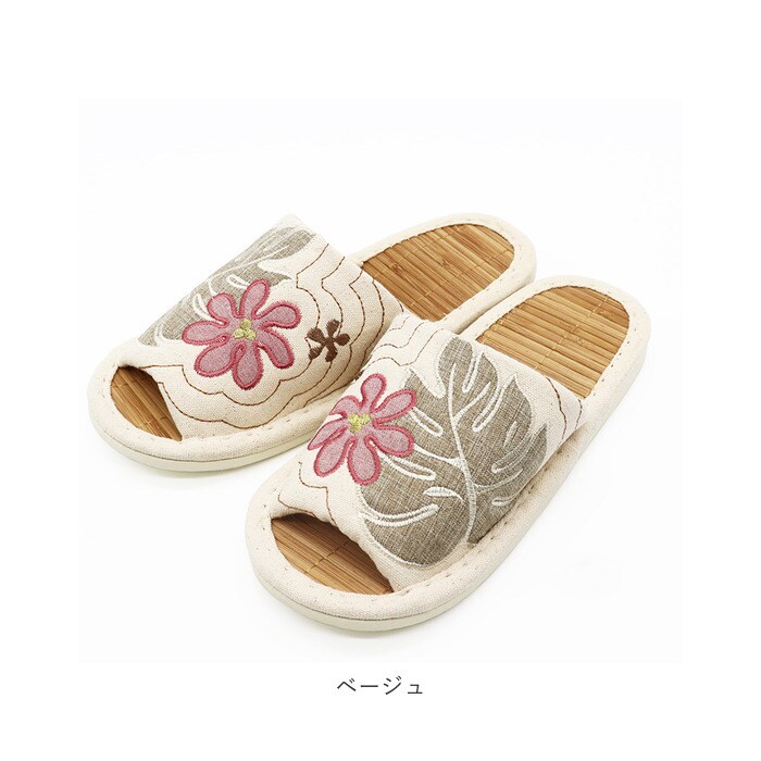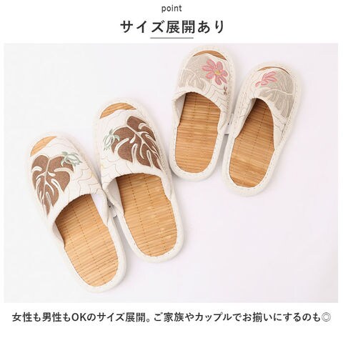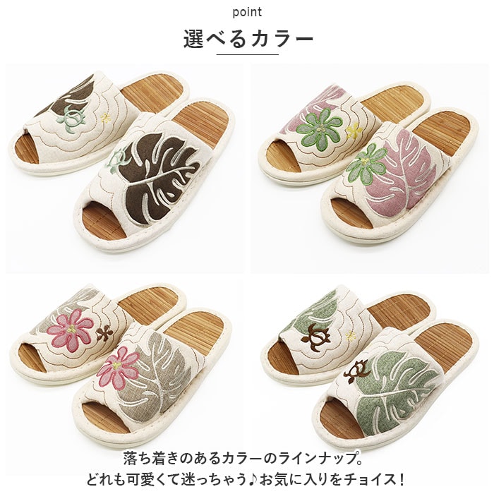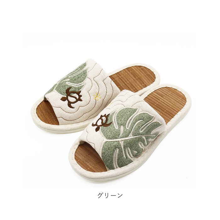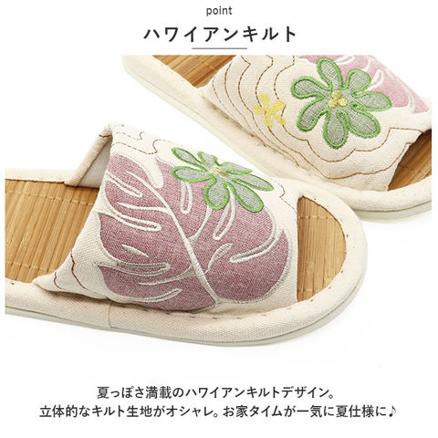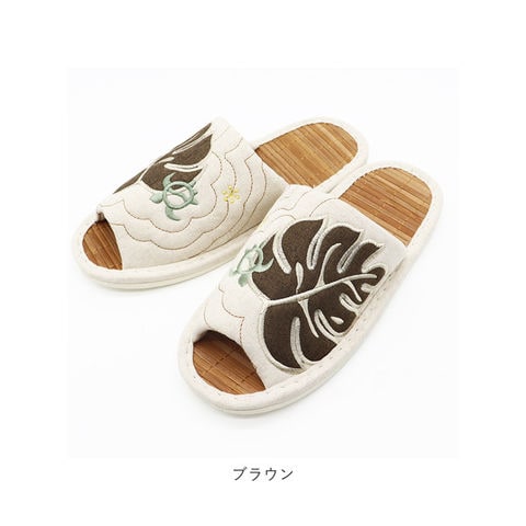 | 商品名 | ハワイアンキルト ビックモンステラアップリケ 茶竹スリッパ |