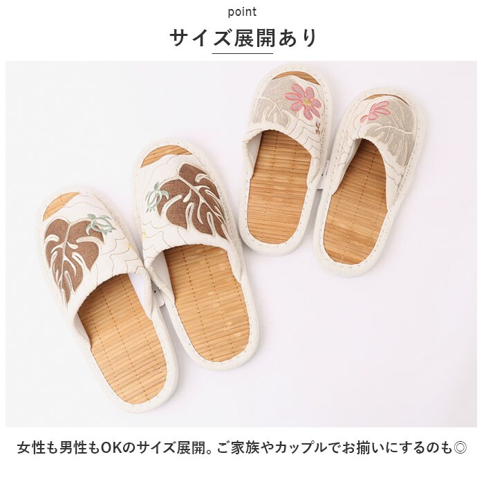 ハワイアンキルト ビックモンステラアップリケ 茶竹スリッパ【ブラウン】【LLサイズ(27~28cm)】