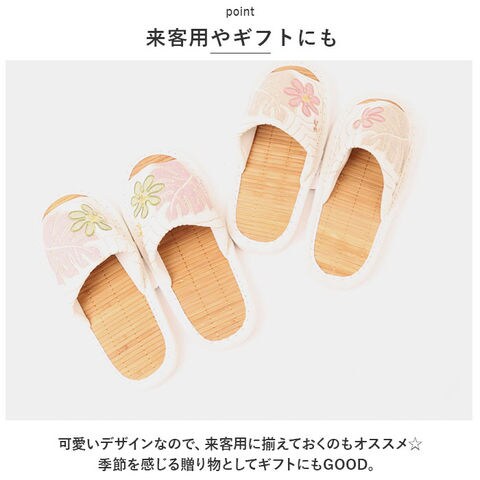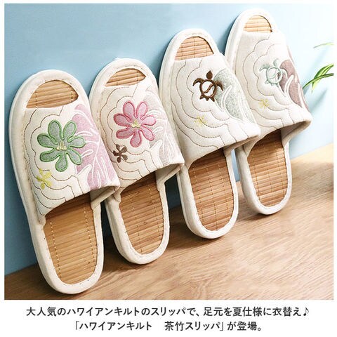 | 商品説明 | 大人気のハワイアンキルトのスリッパで、足元を夏仕様に衣替え♪「ハワイアンキルト 茶竹スリッパ」が登場。【ハワイアンキルト】夏っぽさ満載のハワイアンキルトデザイン。立体的なキルト生地がオシャレ。お家タイムが一気に夏仕様に♪【竹素材】中敷きには竹素材を使用。涼を感じる見た目と、サラっとひんやりした肌触りで、ベタつく季節も快適に。【汚れに強い】・M/Lサイズは底がポリエステルスエードを使ったパタパタ音が鳴らない小音仕様。 ・LLサイズは靴底にはビニールレザーを採用。汚れたらサッと拭けるてお手入れが簡単。【来客用やギフトにも】可愛いデザインなので、来客用に揃えておくのもオススメ☆季節を感じる贈り物としてギフトにもGOOD。【サイズ展開あり】女性も男性もOKのサイズ展開。ご家族やカップルでお揃いにするのも◎【選べるカラー】落ち着きのあるカラーのラインナップ。どれも可愛くて迷っちゃう♪お気に入りをチョイス! |