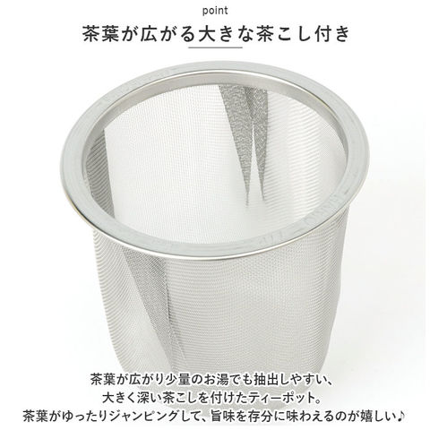 | 注意点 | 電子レンジ:可 (茶こしは使用不可) 食洗機:可 お取り扱いの際は、商品やパッケージなどに記載されている品質表示、アテンションタグ、ご使用上の注意事項などを必ずご確認下さい。本来の目的以外にはご使用にならないで下さい。カメラやモニターの性質により、画像と実物の色の違いがある場合がございますのでご理解願います。 |