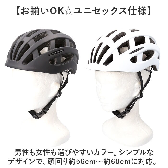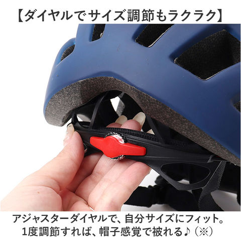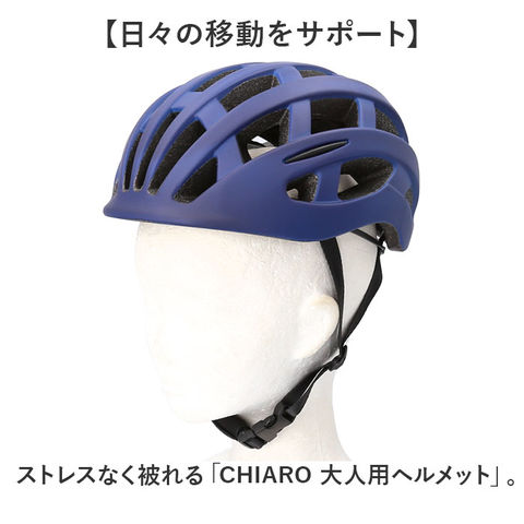 | 商品説明 | 【日々の自転車移動をサポート】自転車利用時の必須アイテム◎ストレスなく被れる「CHIARO 大人用ヘルメット」。【長時間のサイクリングも快適】サッと手に取れて、頭や首への負担も少ない軽量設計。アクティブシーンでも疲れにくい◎【汗をかいてもムレにくいつくり】通気口がしっかり空いており、内側の熱を発散!熱がこもらず、夏場も爽やかさをキープ。【ダイヤルでサイズ調節もラクラク】アジャスターダイヤルで、自分サイズにフィット。1度調節すれば、帽子感覚で被れる♪(※)サイズが合わなくなってきたら、再度調節してください。【丈夫なインモールドタイプ】シェルに直接緩衝材を注入、ヘルメット内部で成形。接着剤不要で剥がれにくく、強度がアップ。【安心・安全のCE適合商品】EU加盟国の安全基準をクリアしたヘルメット。内側にCEマーク入り。【片手で簡単!ワンタッチ着脱】あご紐は長さ調節でき、バックルで着脱もスムーズ。自転車の乗り降り時も手間を軽減。(※)面ファスナー式のあごパッド付きです。【インナーパッドは手洗いOK】肌が1番触れる内側パッドは、面ファスナーで付け外し可。自宅で手洗いできて、衛生面も安心。【お揃いOK☆ユニセックス仕様】男性も女性も選びやすいカラー。シンプルなデザインで、頭回り約56cm~約60cmに対応。 |