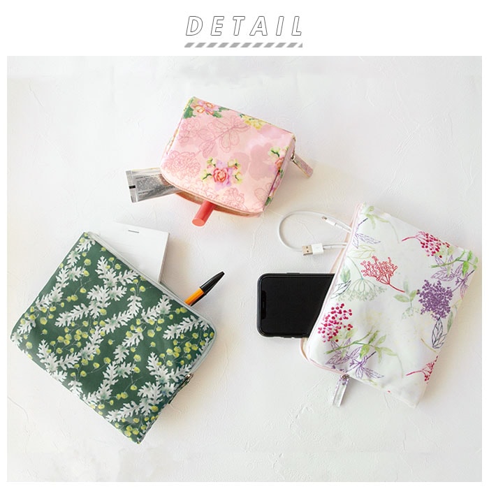 | 商品説明 | やさしい色合いの小花や植物柄が、大人かわいい♪ChouchouFleur(シュシュフール)のポーチが発売。ChouchouFleur(シュシュフール)はフランス語で「お気に入りの花」。お気に入りの花柄が見つかりますように、という想いの込もったプランド。表生地にTPEコーティングを施した再生ポリエステル、裏地にデュポン社のSILVADUR(TM)抗菌剤を使用。抗菌防臭効果があるから、いつでも清潔。メッセージが書ける下げ札付きで、ギフトにもおすすめ♪お好みや用途に合わせて選べる2タイプ。【スクエアタイプ】開口部がガバッと大きく開き、中身がひと目でわかる!ほどよいマチがあり自立するので、コスメポーチにぴったり。内側にリップやピンなどの小物収納に便利な、オープンポケット付き。【フラットタイプ】スリムなフォルムで、クッション性のあるポーチ。スマホの充電器や文房具入れにぴったり。内側にアルコールスプレーなどを倒れないように収納できる、ミニボトルホルダー付き。 |