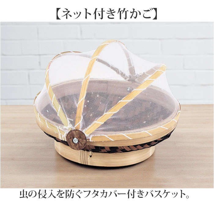 | 商品説明 | 【ネット付き竹かご】虫の侵入を防ぐフタカバー付きバスケット。【天然竹のナチュラル感】お部屋に馴染むやさしい風合いが魅力的!【ネット付きで虫を防ぐ】フタカバーが小物を守る安心の機能設計◎【コンパクトサイズ】ちょっとした小物収納にぴったりな使いやすさ♪【軽量で持ち運びラクラク】移動もスムーズにできる竹製ならではの軽さ〇 |
