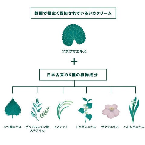 | 商品説明 | 韓国で最も信頼されている「シカクリーム」が、日本独自処方の医薬部外品クリームになって新登場!韓国シカクリームのコンセプト成分「ツボクサエキス」と、日本古来の植物エキスを贅沢に配合。使いやすく肌なじみのいいテクスチャー。肌に保護膜を形成し、外部刺激から肌を守ってくれる。また、抗炎症有効成分のグリチルレチン酸ステアリル配合により、肌荒れやニキビのできにくい肌に。さらに12種類の表示指定成分不使用だから、敏感肌の方でもとっても安心!(※パラベン・エタノール・紫外線吸収剤・石油系界面活性剤・鉱物油・合成香料・法廷色素・フェノキシエタノール・動物性原料・安息香酸・タルクなど)いつものお手入れの後に、適量を手に取って肌の上に優しく塗り、手のひらでもむように抑えるだけ。肌荒れが気になるところに部分的に使用するだけでもOK。マルチな悩みをケアし、トラブルの無い肌に。 |