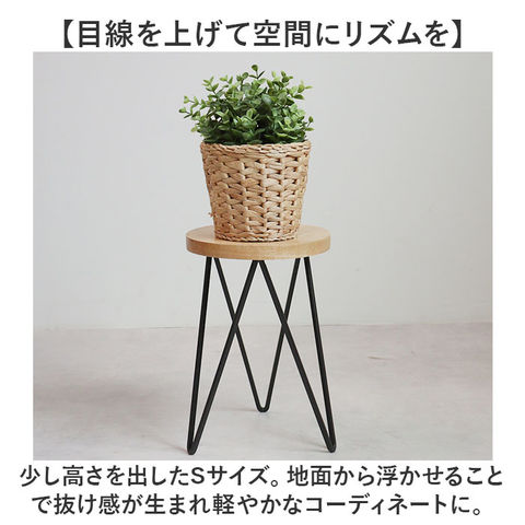 | 商品説明 | 【置くだけでサマになるインテリア】ナチュラルでスタイリッシュ!「サークルスタンド」Sサイズが新登場。【空間に溶け込むシンプルデザイン】温かみのあるマンゴーウッドと、無機質なアイアンの組み合わせ。趣のある雰囲気に。(※)天然木を使用しているため、1点1点木目や色が異なります。【場所を選ばないコンパクト設計】スペースを取らず、玄関やお部屋に置きやすい!ソファやベットのサイドテーブルとしても。【植物や小物を置いたり使い方色々】グリーンを乗せてリラックス空間に。小物を入れたカゴを乗せてもOK。耐荷重は10kg。【目線を上げて空間にリズムを】少し高さを出したSサイズ。地面から浮かせることで抜け感が生まれ軽やかなコーディメートに。【2サイズ並べるのもおすすめ】別売りのLサイズと並べると、高低差が出てこなれ感アップ☆圧迫感を感じずスマート。(※)Lサイズは当店別ページで販売中。商品コード:circlestandl【主張しすぎず飽きのこない仕上がり】おしゃれに佇むサークルスタンド。お気に入りのアイテムで暮らしを豊かに。 |