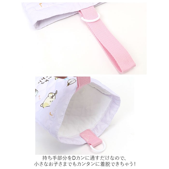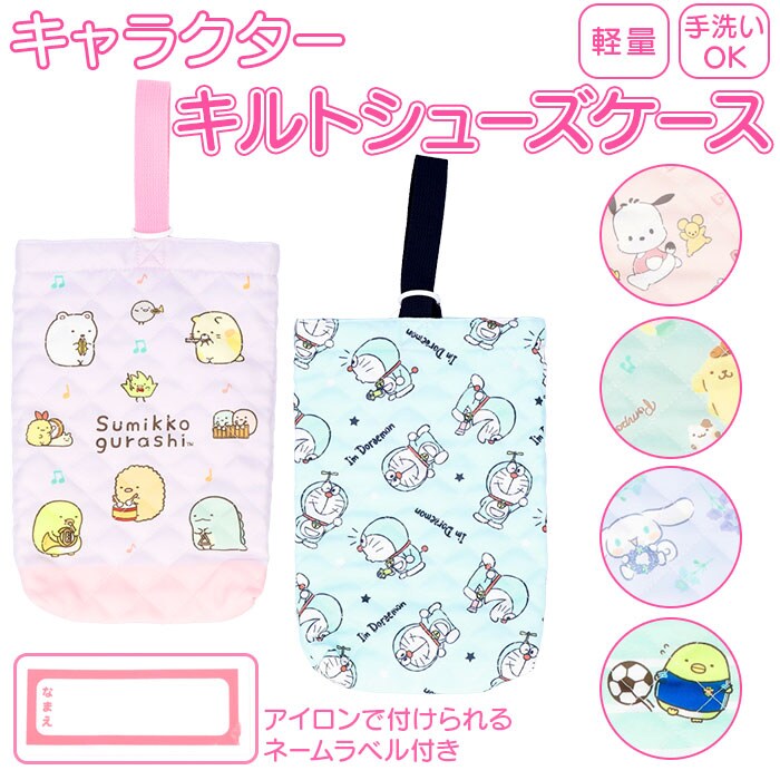 | 商品説明 | 上履きや外履きの持ち運びに便利なキルトタイプのシューズケースが登場。シューズケースには全面プリント柄のキルト生地を使用。ふんわり柔らかく、とっても軽量◎持ち手部分をDカンに通すだけなので、小さなお子さまでもカンタンに着脱できちゃう!アイロンで付けられるネームラベル付き。汚れが気になったら手洗いOK。お子さまに人気のキャラクターデザインをラインナップ★入園・入学準備にもおすすめ。 |