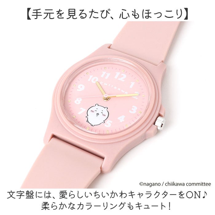 | 商品説明 | 【ちいかわの仲間といつも一緒☆】お気に入りをいつも身に付けられる♪「ちいかわ PVCウォッチ」が新登場。【手元を見るたび、心もほっこり】文字盤には、愛らしいちいかわキャラクターをON♪柔らかなカラーリングもキュート!【身につけやすいカジュアルウォッチ】PVCバンドを採用!汗や汚れも拭き取りやすく、軽やかな付け心地。【時刻を確認しやすい文字盤】大きめの数字を配置し、シンプルで見やすい仕上がり。文字盤ケース横のつまみで時刻調節。【自分サイズに心地よくフィット】ベルトは9段階長さ調節OK。手首のサイズに細かく合わせられるのが嬉しい!【安心の日本製ムーブメント】ムーブメントは高い性能を誇る日本製。秒針が1秒刻みで動くステップ運針。【大人も子供も!ちいかわ好きな方へ】カラビナが付いた、キャラクター柄クリアケース入り。誕生日などお祝いのギフトにも! |