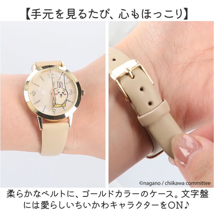 | 商品説明 | 【ちいかわの仲間といつも一緒☆】お気に入りをいつも身に付けられる♪「ちいかわ レザーウォッチ」が新登場。【手元を見るたび、心もほっこり】柔らかなベルトに、ゴールドカラーのケース。文字盤には愛らしいちいかわキャラクターをON♪【時刻を確認しやすい文字盤】・4ヵ所に数字を配置、シンプルで見やすい仕上がり。文字盤ケース横のつまみで時刻調節。【自分サイズに心地よくフィット】ベルトは7段階長さ調節OK。女性の手元にマッチする幅に設計。【安心の日本製ムーブメント】ムーブメントは高い性能を誇る日本製。秒針が1秒刻みで動くステップ運針。【大人も子供も!ちいかわ好きな方へ】カラビナが付いた、キャラクター柄クリアケース入り。誕生日などお祝いのギフトにも! |