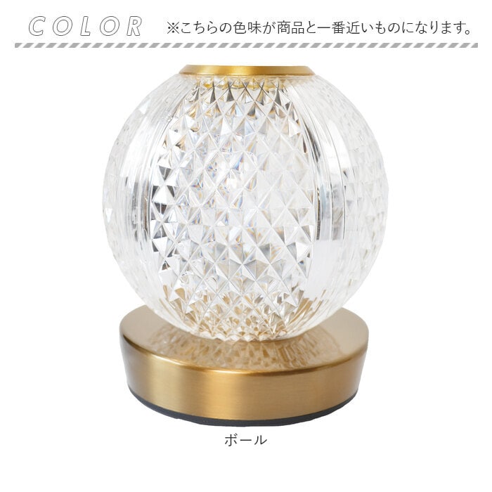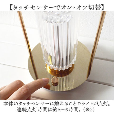 | 商品説明 | 【優しく灯してムードを盛り上げる】光の演出でグンと垢抜け♪間接照明としても使える「クラルテ LEDランタン」。【インテリアのおしゃれなアクセント】どんな空間にも馴染む、クラシカルなデザイン。置いておくだけでもこなれた雰囲気をプラス。【場所を選ばないコードレスタイプ】充電式バッテリーを内蔵し、付属のUSBケーブルでサクッと充電。電池も不要で手軽に使える☆(※1)電源:DC 5V 1A。充電時間は約2~4時間。【タッチセンサーでオン・オフ切替】本体のタッチセンサーに触れることでライトが点灯。連続点灯時間は約6~8時間。(※2)点灯時間の目安は、充電環境や調光の強弱などにより異なります。【お好みを選べる3色のライトカラー】タッチセンサーに触れるごとに、オレンジ色→白色→中間色に変化。気分に合わせて楽しめる◎【最低照度から無段階調光も可能】ライト点灯時にタッチセンサー部分を長押し。触れている間、明るさを調節。【便利なインジケーターライト付き】満充電を知らせてくれるインジケーター。充電中は赤色に点灯、完了すると緑色に。【お気に入りを選べるデザイン】フォルムの異なる3タイプをご用意。クリアとアンティーク調のゴールドカラーが素敵にマッチ。 |
