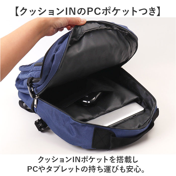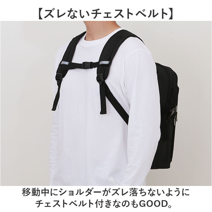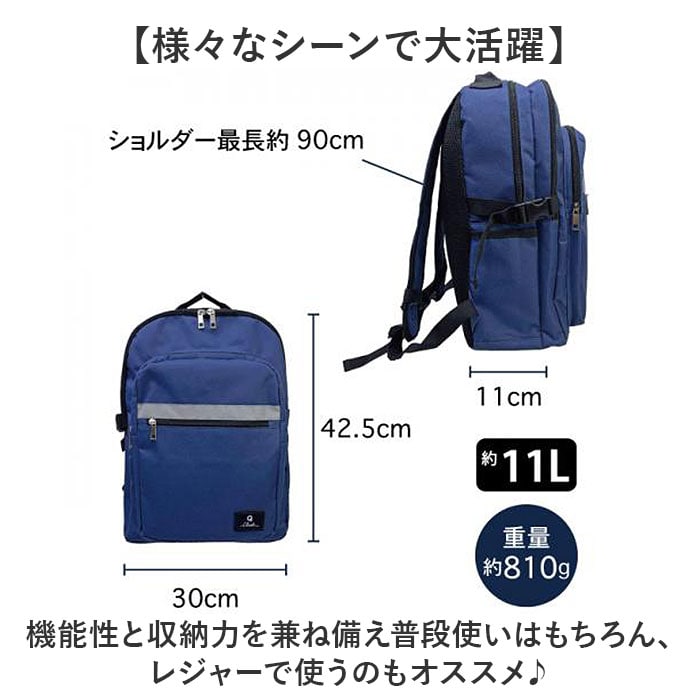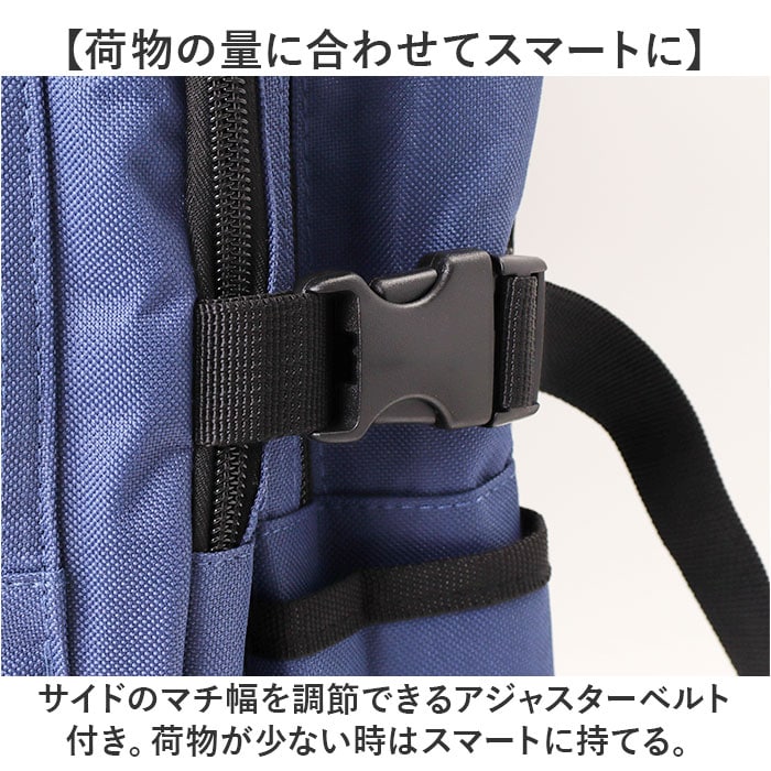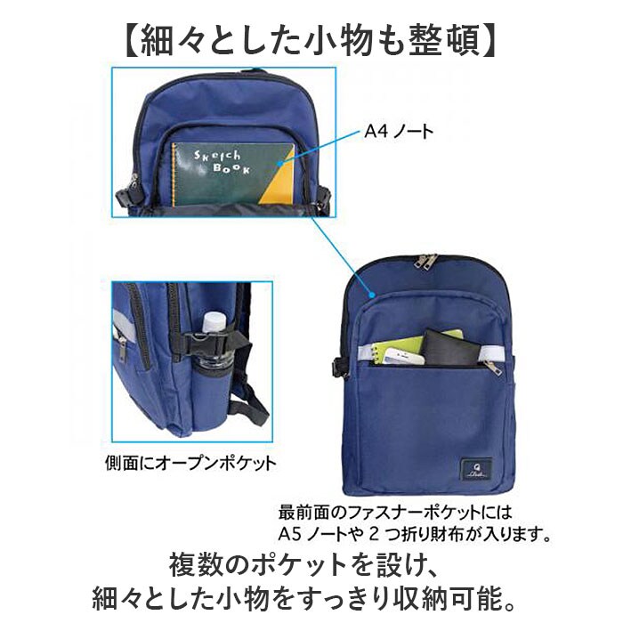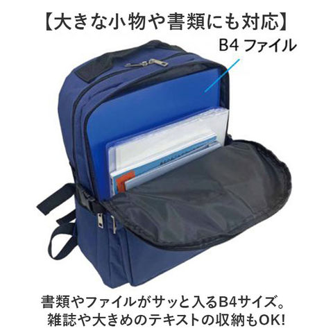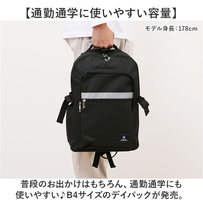| 商品説明 | 【通勤通学に使いやすい容量】普段のお出かけはもちろん、通勤通学にも使いやすい♪B4サイズのデイパックが発売。【大きな小物や書類にも対応】書類やファイルがサッと入るB4サイズ。雑誌や大きめのテキストの収納もOK!【クッションINのPCポケットつき】クッションINポケットを搭載しPCやタブレットの持ち運びも安心。【荷物の量に合わせてスマートに】サイドのマチ幅を調節できるアジャスターベルト付き。荷物が少ない時はスマートに持てる。【細々とした小物も整頓】複数のポケットを設け、細々とした小物をすっきり収納可能。【雨の日や薄暗い時も安心】フロントとショルダーにリフレクターテープ付き。強い光を反射し周囲へピカッとお知らせ☆【背負い心地快適】背面とショルダーベルトはメッシュクッション付き。長時間背負っていても蒸れにくく快適に【ズレないチェストベルト】移動中にショルダーがズレ落ちないようにチェストベルト付きなのもGOOD。【スーツや制服に合う】ベーシックカラーとシンプルな見た目でスーツや制服と相性抜群♪【毎日使っても安心なタフ仕様】600Dのポリエステル生地を使用し、傷つきや破れに強く毎日使えるタフ仕様。【様々なシーンで大活躍】機能性と収納力を兼ね備え普段使いはもちろん、レジャーで使うのもオススメ♪【ポケット仕様】メイン収納・・・PCポケット×1、オープンポケット×1フロント・・・ファスナーポケット×2両サイド・・・オープンポケット×1ずつ |