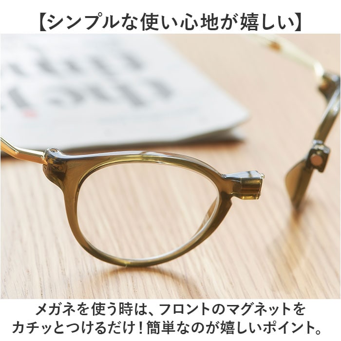 | 商品説明 | 【ノンストレス!首掛け仕様の老眼鏡】付け外しのストレスから解放◎「クリック パントス」が登場!【老眼鏡の付け外しが煩わしい方へ】老眼鏡のつけ外しでレンズが汚れる…老眼鏡どこに置いたっけ…そんな煩わしさにサヨナラ!【作業中は首にかけたままでOK◎】メガネを使わない時は、首下げOK。毎回ケースに仕舞う手間が省け、もう置き場所に困らない!【シンプルな使い心地が嬉しい】メガネを使う時は、フロントのマグネットをカチッとつけるだけ!簡単なのが嬉しいポイント。【どこでも使えるおしゃれなデザイン】オフィスもお出かけもOKな、ファッショングラスのようなデザイン!老眼鏡に見えない♪【軽量だけど耐久性もバツグン】ナイロンを使用しているので、軽くて丈夫!長く快適に愛用できるアイテム。【専用ケースで持ち運びもOK】専用のケースを付属。カバンに入れて持ち運びができるので、職場やお出かけ先でも使える。 |