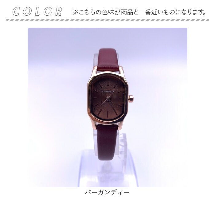 | 商品説明 | 長丸でこぶりの可愛い時計。時計のケースと針はピンクゴールドを使用し、より可愛い雰囲気。ベルトも落ち着いたマット風を使用。 |
