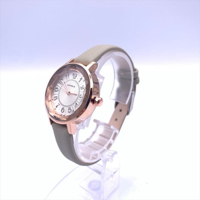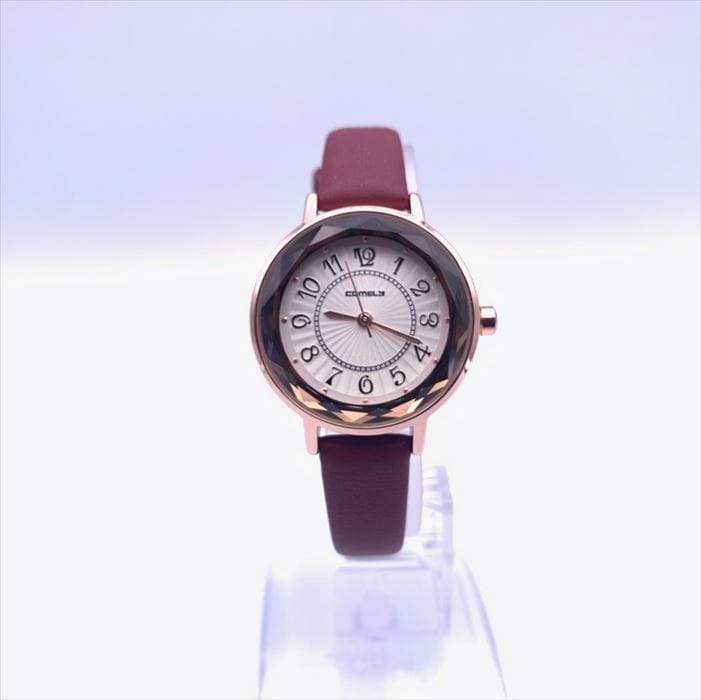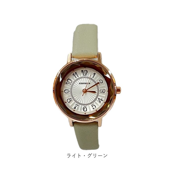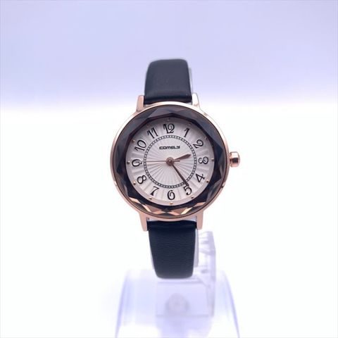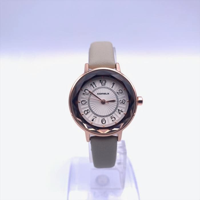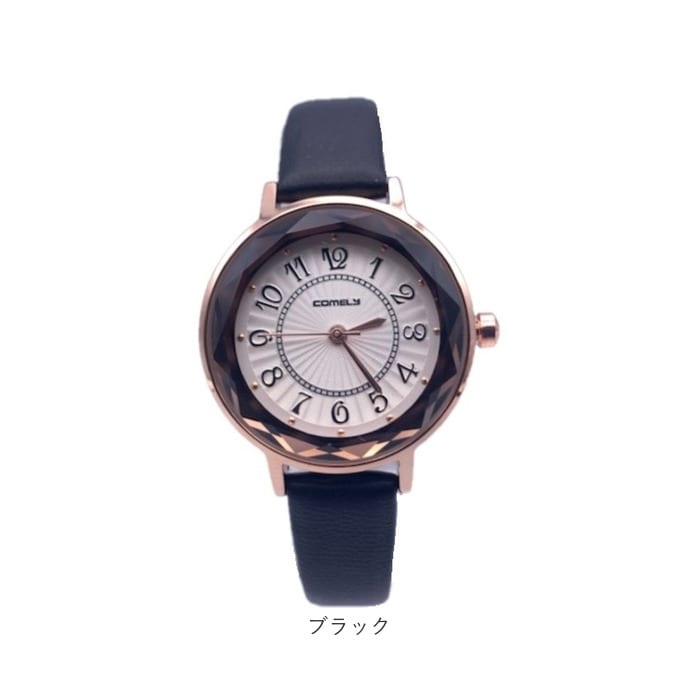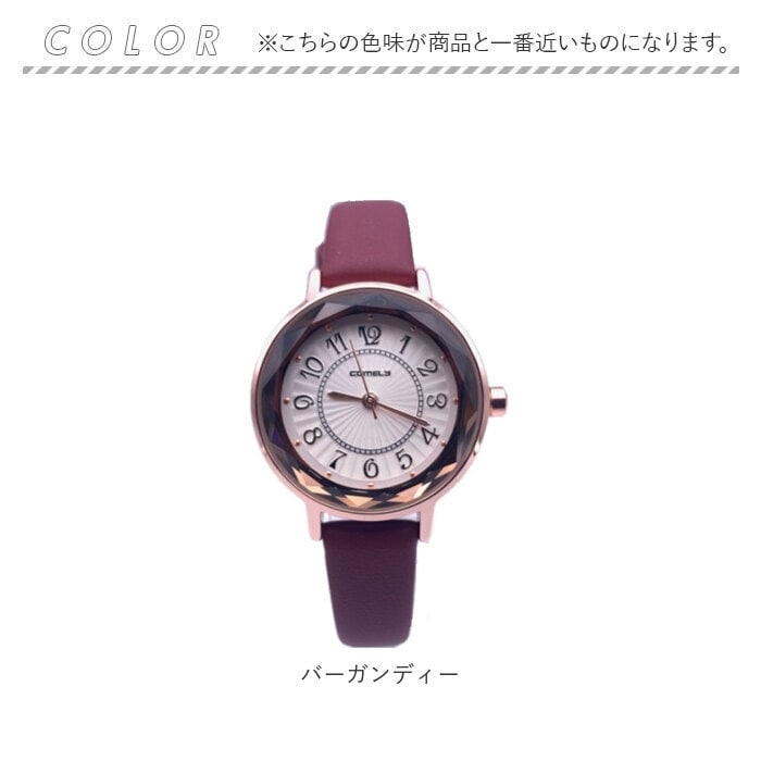 | 商品説明 | カットガラスでおしゃれなレディース時計。文字盤も見やすいオール数字を使用。ベルトは落ち着いたマットカラーを使用。 |
