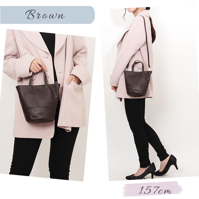 シュリンクレザーバケツ型ミニ2wayトート【Dブラウン】