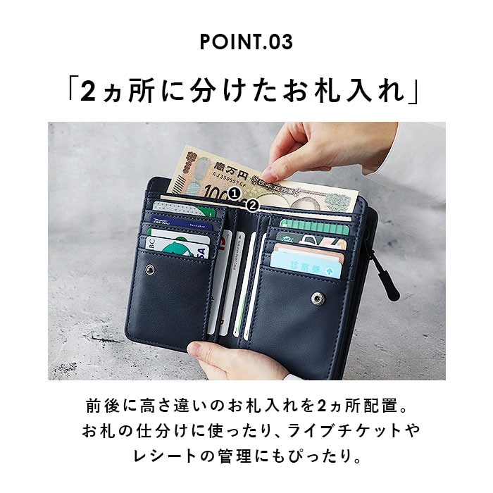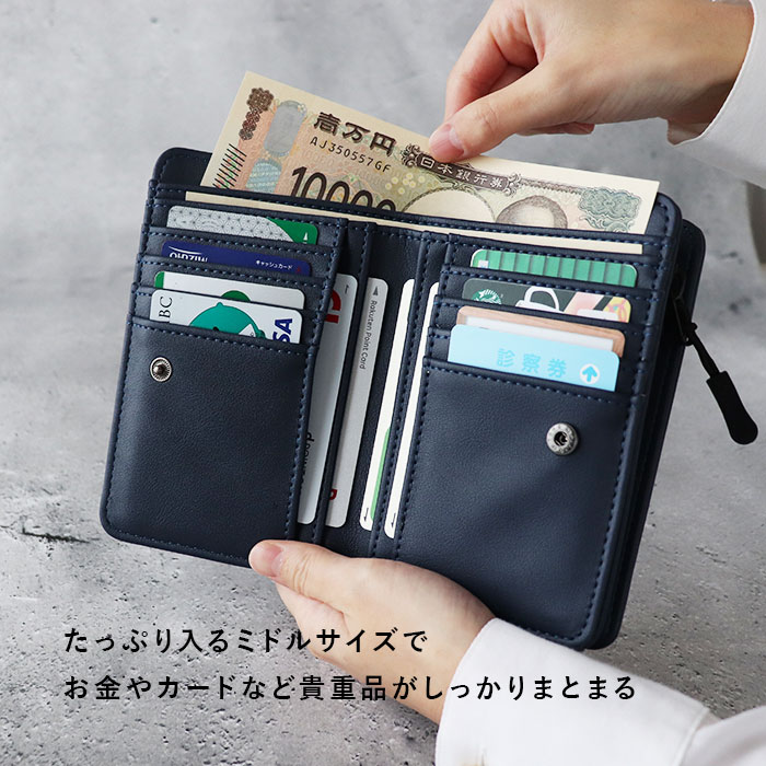 切り替え合皮ミドル財布【ネイビー】