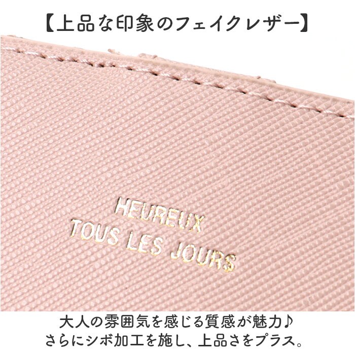 | 商品説明 | 【取り出しやすいL字ファスナー財布】シボ加工が大人っぽい♪L字ファスナー財布が登場。【L字ファスナー】L字ファスナー仕様なので、開閉がスムーズですっきりした見た目に◎【必要なカードをIN】計12個のカードポケットを搭載し、クレカや身分証、ポイントカードなどまとめて収納。【2つのお札入れ】用途や種類で分けられる2つのお札入れ。チケットやレシートなどを独立して収納するのも♪【ファスナー内も充実のポケット】ファスナー内側に仕切りポケットを備えた小銭入れ。ポケットも2つあり、キャッシュの収納も充実で現金派の方にも嬉しい仕様◎【コンパクトなサイズ感】手に取りやすいサイズで、小さめバッグにもすっきり収まる持ち運びやすさ☆【上品な印象のフェイクレザー】大人の雰囲気を感じる質感が魅力♪さらにシボ加工を施し、上品さをプラス。【プチギフトに】シンプルかつおしゃれなので、幅広い年齢の方が愛用できる♪プチギフトにもオススメ♪【ポケット仕様】カードポケット×12、お札・チケット入れ×2、ファスナー内仕切りポケット×2、ファスナー内カードポケット×2 |