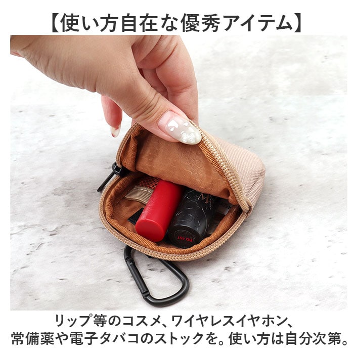 | 商品説明 | 【必需品をすっきり持ち歩ける】いつも持ち歩く小物をIN。バッグ等に取り付けできる「L.R.M カラビナミニポーチ」。【気取らないカジュアルなルックス】サラッと軽い生地に、「L.R.M」のロゴタグがアクセント。ラフに持ち出せるミニポーチ。【ガバっと開いて出し入れスムーズ】大きくオープン!出し入れに手間取らず、ファスナーを閉じれば中身の飛び出しをガード。【使い方自在な優秀アイテム】リップ等のコスメ、ワイヤレスイヤホン、常備薬や電子タバコのストックを。使い方は自分次第。【細々した物も迷子知らず】内側にメッシュポケットを1つ配置。ポーチ内で仕分けできるのもポイント。【サッと装着できるカラビナリング】バッグやスマホショルダーに通して持ち運び。ベルトループなどに取り付けもOK。【シンプルなユニセックスデザイン】無駄な装飾がなく、持つ人を選ばない仕上がり。ちょっとしたギフトにもおすすめ!【アウトドアブランド、L.R.M】アクティブスタイルを、もっと気軽に持てるアイテムに昇華させたいという思いから誕生。(※)LARGE RADIATION MANIPULATEの略です。【ポケット仕様】内側:メッシュポケット×1 |
