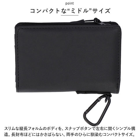 | 商品説明 | 男性のワイルドな手のひらにフィットするコンパクトサイズ。「L.R.M -エル・アール・エム-」から、「止水ファスナー メンズ 合皮ミドル財布」が新登場。【About L.R.M】L.R.Mは「LARGE RADIATION MANIPULATE」の略。アクティブスタイルをもっと気軽に持てるアイテムに昇華させたいという思いから生まれたアウトドアブランド!【ワイルドな魅力が引き立つ素材感】シックなカラーのフェイクレザーをブラックのファスナーで縁取り、「L.R.M」のロゴを控えめに型押ししたシンプルデザイン。ティーンのボーイズからビジネスパーソンまで、幅広い世代のメンズを虜にするデザイン。【コンパクトな“ミドル”サイズ】スリムな縦長フォルムのボディを、スナップボタンで左右に開くシンプル構造。長財布ほどにはかさばらない、両手のひらに馴染むコンパクトサイズ。【カードポケットが充実】フラップを開いた正面には、カードポケット×8か所、フリー差し込みポケット×4か所を配置。お財布の中で整理のつかないカード類をすっきりと定位置に。【2つに仕切られたお札入れ】札入れスペースは2つのポケットに仕切られているので、紙幣を額面ごとに分けたり、レシートの整理がしやすい造り。【2層式コインポケット】フラップを開いて右側には、L字型ファスナー式のコインスペースを装備。ジャバラ状に大きく開く2層式ポケットが使いやすさのヒミツ。【マルチに使えるカードポケット】コインポケットの内側両サイドには、よく使うクレジットカードがサッと取り出せるカードポケット付き。レシートやメモの整理に使ってもOK!【カラビナでアレンジ自在】付属のカラビナフックで、ジーンズのベルトループやバッグのハンドルに繋げば、ファッションの印象的なワンポイントに。【印象的なフロントフェイス】マットな質感が手のひらに馴染む合皮ボディ正面には、IDカードのような貴重品が安心して収納できる止水ファスナーポケット付き。交通系ICカードを入れておけば、駅の改札口もスムーズにタッチ&スルー。 |
