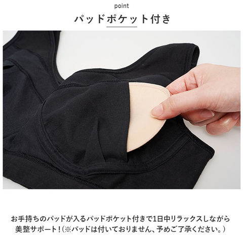 | 商品説明 | 美胸×肩甲骨を寝ながらケアできるナイトブラが登場!【ソフトな補正でノンストレス】肩甲骨をキュッと内側に寄せるパワーネットを背面に内蔵し正しい姿勢をKEEP♪伸縮性のあるストレスフリーな着け心地でお家タイムにもピッタリなアイテム。【バストもしっかりホールド】フロントのカップ部分はバストの横流れもしっかりホールドできる作りに。二重構造になっておりバストトップが目立ちにくいのも嬉しいポイント。【パッドポケット付き】お手持ちのパッドが入るパッドポケット付きで1日中リラックスしながら美整サポート!(※パッドは付いておりません、予めご了承ください。)可愛いハートのワンポイントを左下に配置。 |