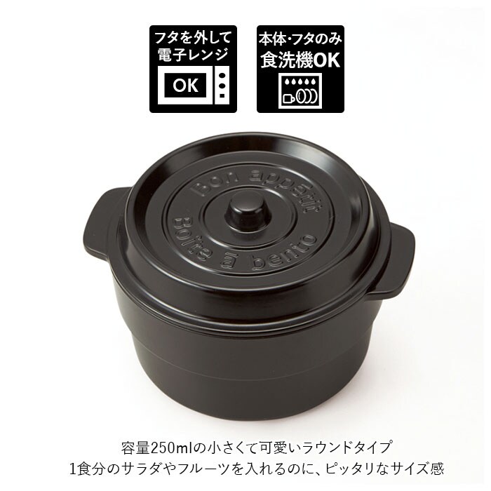 | 商品説明 | ヨーロッパで定番な鉄製鍋のおしゃれ感を、そのままランチボックスに♪軽量な樹脂製のランチボックス「ココポットミニ」が発売。容量250mlの小さくて可愛いラウンドタイプ。1食分のサラダやフルーツを入れるのに、ピッタリなサイズ感。フタは、はずれにくく中身が漏れにくいパッキン式。しっかり密閉できるから、安心して持ち運ぶことができる◎フタを外して電子レンジの温めOK!本体とフタは食洗機の使用が可能だから、お手入れもラクチン。(※パッキンは外してご使用ください。)色違いで揃えたくなる、カラーバリエーション!ミニランチボックスとしてはもちろん、ご自宅で使う保存容器としても活躍。 |