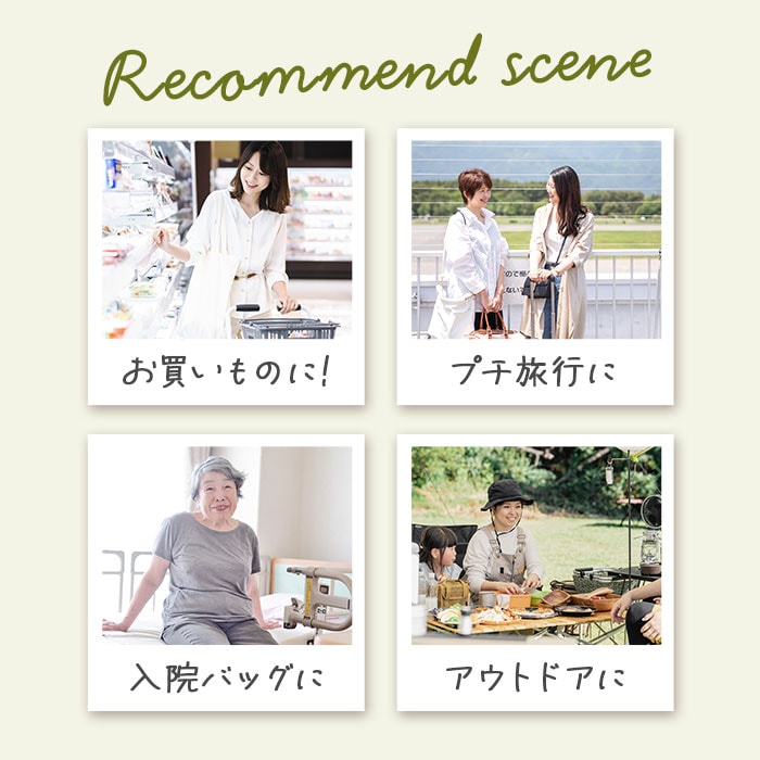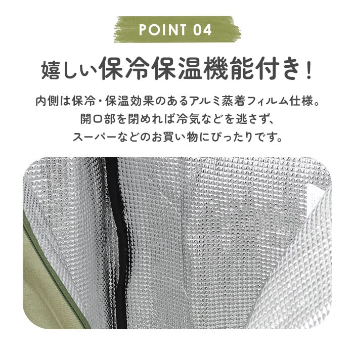 | 素材 | [バッグ表地]ポリエステル100%[裏地]アルミ蒸着フィルム [フレーム素材]スチール、合成樹脂 |