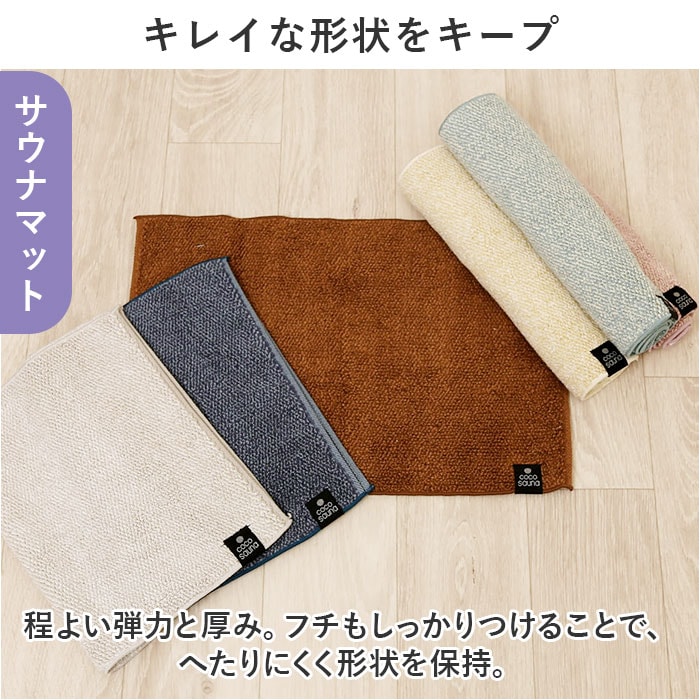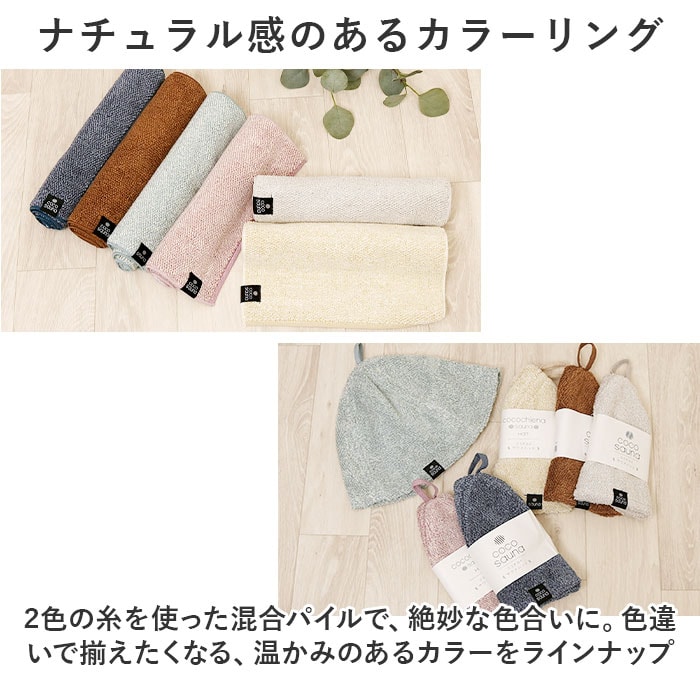 | 商品説明 | 触り心地、使い心地、洗い心地。そのたびに変わらない”心地よい”ひとときを。洗うほどに膨らむタオルシリーズの、サウナハット&マットセット。【洗うほどに膨らむスイッチパイル】撚り方向の違う2種類のパイルが互いに反発して立ち上がることにより、洗ってもへたれにくい!洗濯を重ねるほどふっくら。【お肌に優しいコットンパイル】お肌に直接触れる部分(パイル)はコットン100%。撚りを少なくした甘撚りの糸を使い、お肌に寄り添うソフトな風合いを実現。【水分を素早く吸水して快適】ヨコ糸に高吸水素材を使用。体から流れ落ちる水滴をサッと吸水。【丸洗いできてお手入れ簡単】ネットに入れて、洗濯機洗い可能。じゃぶじゃぶ洗えて衛生的。【ナチュラル感のあるカラーリング】・2色の糸を使った混合パイルで、絶妙な色合いに。色違いで揃えたくなる、温かみのあるカラーをラインナップ。《サウナハット》【のぼせ防止に役立つアイテム】ハットを被るだけで、熱波や乾燥から髪や頭皮を保護してのぼせを防ぐ!顔周りの熱を遮断、乾燥から髪を守る効果も。【ゆったり被れるフリーサイズ】内回りに余裕をもたせたつくり。目深に被れて、人が多い場所でもサウナタイムに没頭。【サッと掛けられるループ】ハットの上部にループ付き。フックなどに引っ掛けて乾かしたり、吊るし収納もできちゃう!《サウナマット》【キレイな形状をキープ】程よい弾力と厚み。フチもしっかりつけることで、へたりにくく形状を保持。【1人分のコンパクトなサイズ感】ササッと広げて使いやすい、1人分にぴったりサイズ。軽量でスリムに持ち運びやすく、ハンガー干しもラクラク。【抗菌・防臭効果でいつも清潔】抗菌・防臭加工が施されているから、安心して使える!繊維上の雑菌の繁殖を防ぎ、不快なニオイを消臭。 |
