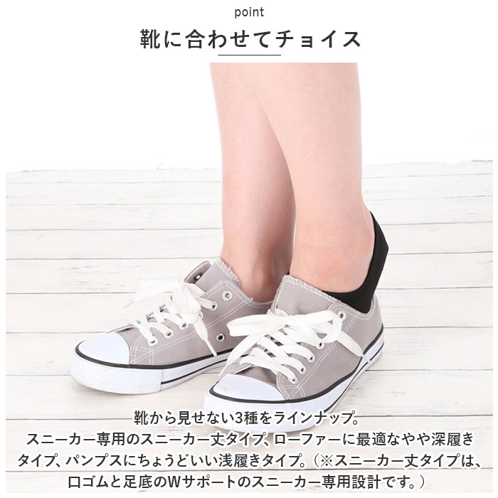 | 素材 | 【スニーカー丈・やや深履き】ポリエステル、ポリウレタン 【浅履き】ポリエステル、ナイロン、ポリウレタン |