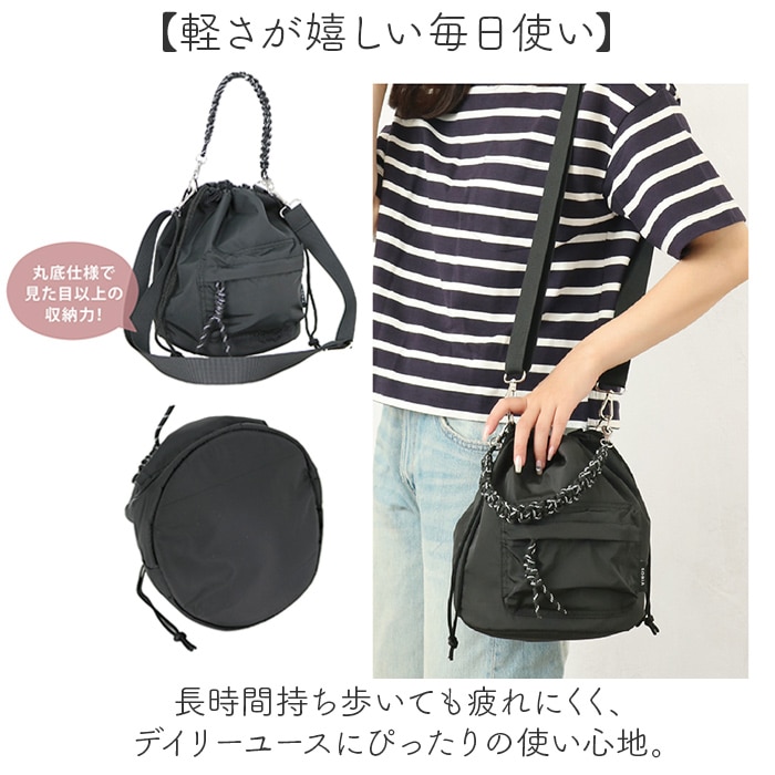 | 商品説明 | 【コード編みが映える巾着】デイリーに使える「コード編み巾着ショルダー」。【2WAYで使える便利さ】ハンドルとショルダーが付け替えられ、気分やシーンに合わせて持ち方を自由に変えられる♪【A5も入る収納力】A5サイズとペットボトルがすっぽり入るサイズ感で、お出かけに必要な荷物をしっかり収納できる◎【内側ポケットで整理】オープンポケット2つとファスナーポケット1つを内側に配置し、スマホや鍵などの小物を分けて収納〇【フロントポケット付き】さっと取り出したいものはフロントポケットへ入れておけば、バッグを開けずにアクセスできて便利。【コード編みの存在感】コード編みストラップがアクセントになり、シンプルなコーディネートもぐっと華やかに見せてくれる!【軽さが嬉しい毎日使い】長時間持ち歩いても疲れにくく、デイリーユースにぴったりの使い心地。 |