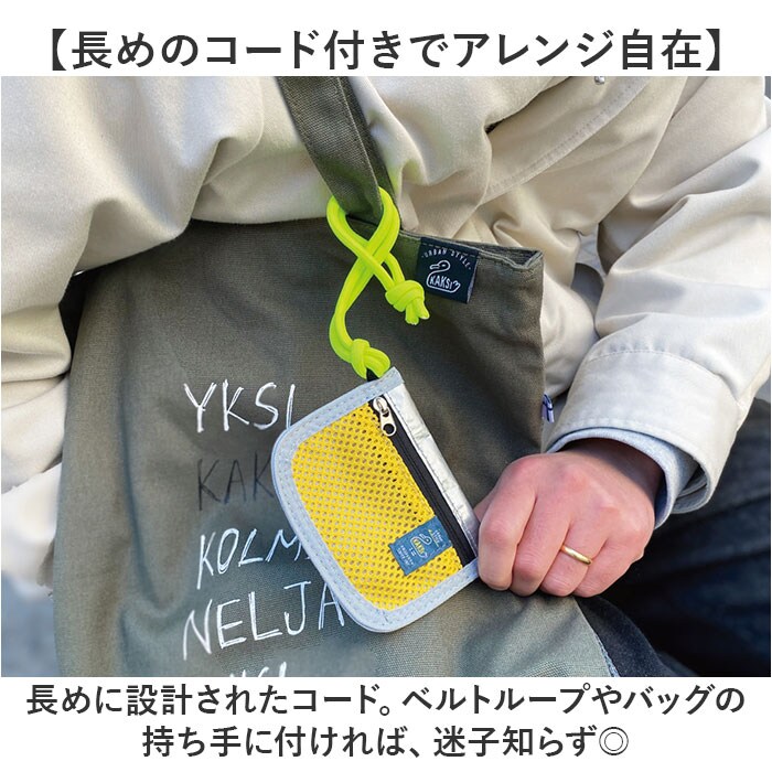 | 商品説明 | 【アクセサリー感覚で持てる相棒】小銭やカード、小物の収納に最適♪マルチに活躍する「KAKSI コインケース」。【改札やタッチ決済もスムーズに対応】ICカードがぴったり収まるサイズ感。カードをタッチするシーンも手間取らない♪【仕分けできる2ポケット付き】ファスナー&オープンタイプのポケットを、1つずつ配置。すっきり整頓。【ミニポーチやウォレットとしても】細々したものを入れたり、お財布使いも!用途やお好みに合わせて、自分だけの使い方を♪【デイリーにもアウトドアにも万能】軽くて丈夫なポリエチレン素材。手軽に持ち出しやすく、かさばらないコンパクトボディ。【長めのコード付きでアレンジ自在】長めに設計されたコード。ベルトループやバッグの持ち手に付ければ、迷子知らず◎【コーデにちょっぴり遊び心をプラス】アクセントになるポップなカラー使いが印象的。ファッションに合わせておしゃれに持ち歩こう!【KAKSIとは】フィンランド語で数字の”2”を意味する言葉。1番大切な日常のすぐ隣に寄り添えますように。【ポケット仕様】前面:ファスナー式メッシュポケット×1背面:オープンポケット×1 |