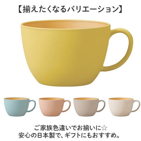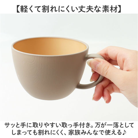 | 商品説明 | 【お気に入りの食器で暮らしを豊かに】おしゃれな食卓に。キャンプ等にもおすすめ!「colimn 木目カップ CC」。【木目食器シリーズcolimn】木目とカラーが調和した、心地よいデザイン◎テーブルを素敵に彩ってくれる♪【優しく馴染むナチュラル感】落ち着きのある、マットな木風仕上げ。1つ1つ異なる色目や風合いも魅力。【撥水効果で簡単拭き取り】撥水・防汚性アップ◎水切れが良く、油汚れが付きにくいクリーンコート加工済み。【軽くて割れにくい丈夫な素材】サッと手に取りやすい取っ手付き。万が一落としてしまっても割れにくく、家族みんなで使える♪【電子レンジで温めできて便利】電子レンジ対応で、温め直しも可能。デイリー使いに最適、容量は約450ml。(※)最大加熱時間・・・600W:2分/1000W:1分。【食洗機に任せて、ひとやすみ】家庭用食洗機に対応。洗い物時間を減らせて、忙しい毎日の味方!【揃えたくなるバリエーション】ご家族色違いでお揃いに☆安心の日本製で、ギフトにもおすすめ。 |