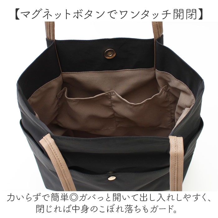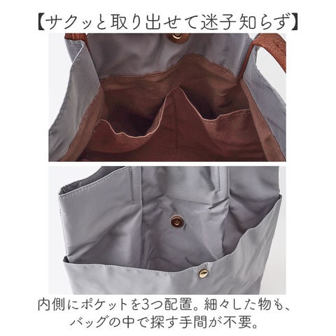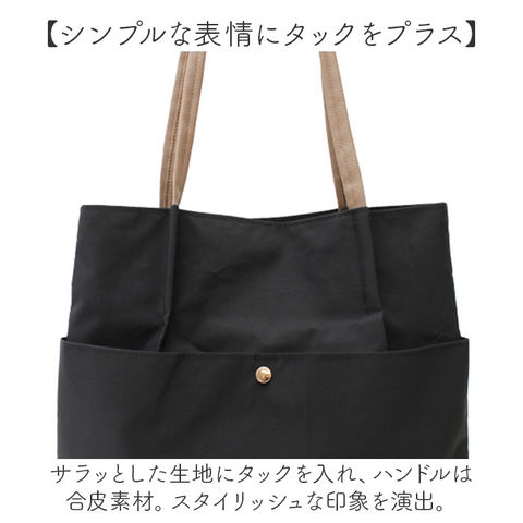 | 商品説明 | 【デイリーに使えるお出かけの相棒】コーデを選ばないデザイン◎使い勝手もばっちりな「コンビシンプルタックトート」。【シンプルな表情にタックをプラス】サラッとした生地にタックを入れ、ハンドルは合皮素材。スタイリッシュな印象を演出。【肩掛けできて移動がラクラク】アウターの上からも、肩掛けできるハンドル。両手を自由に使えて、荷物が重くなっても大丈夫。【肩からの滑り落ちもガード】合皮素材のハンドルは、肩から滑り落ちにくくストレスフリー。【マグネットボタンでワンタッチ開閉】力いらずで簡単◎ガバっと開いて出し入れしやすく、閉じれば中身のこぼれ落ちもガード。【A4対応ですっきりひとまとめ】A4が縦向きに。程よくマチを設け、お出かけや通勤に必要な物が、これ1つに収まる◎(※)ソフトな底材入りです。【サクッと取り出せて迷子知らず】内側にポケットを3つ配置。細々した物も、バッグの中で探す手間が不要。【飽きが来ず長く愛用できるデザイン】トレンドに左右されない仕上がり。落ち着きのあるカラーリングで、シーン問わずヘビロテ☆【ポケット仕様】内側:オープンポケット×2前面:マグネットポケット×1 |