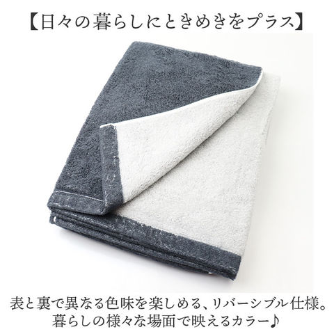 | 商品説明 | 【機能とデザインの絶妙バランス】色味と肌触りが特徴◎DAILY PRAIRIE リバーシブルビッグタオル 2枚セット。【日々の暮らしにときめきをプラス】表と裏で異なる色味を楽しめる、リバーシブル仕様。暮らしの様々な場面で映えるカラー♪【織物の町、今治産の優しいタオル】細い糸を2本撚り合わせ、ふっくら優しい!タオルの名産地、今治で作られた綿100%素材。【吸水力が高く、洗うほど柔らか】体や髪の水滴をサッと吸水。洗うほどにふっくら感も増し、お肌に馴染む仕上がり。【用途が広がるビッグバスタオル】身体を包み込める、海外ホテルのような大きめサイズ。お昼寝用やお子さまのタオルケットにも。【お気に入りが見つかるラインナップ】ふんわり心地よく、おしゃれに。普段使いからお部屋の差し色まで厳選した、カラー展開♪【自宅用にも贈り物にもおすすめ】家族で使えて、洗い替えに便利な2枚セット。お返しや新生活のお祝いギフトにもぴったり。 |