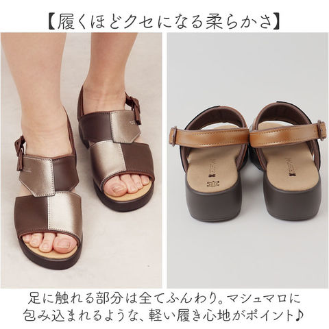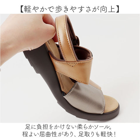 | 商品説明 | 【素足がよろこぶ、心地よさ♪】生活のあらゆるシーンに、快適なスタイルを提案!「クロワッサン レディースサンダル」。【履くほどクセになる柔らかさ】足に触れる部分は全てふんわり。マシュマロに包み込まれるような、軽い履き心地がポイント♪【足裏に馴染むフットベッド】足裏の形状に合わせたフットベッド。しっとりとした肌触りで、素足でも疲れにくい◎【ソフトなストレッチ生地が嬉しい】裏地はサラッとソフトな、ストレッチ生地。足に食い込むことなく、優しくサポート。【指1本で、脱ぎ履きがスムーズ】引っ張るだけのゴムストラップ。5段階サイズ調節が可能で、自分サイズにフィット。【軽やかで歩きやすさが向上】足に負担をかけない柔らかソール。程よい屈曲性があり、足取りも軽快!【年代問わず、おしゃれに履ける☆】アッパーに本革を使い、落ち着きのある風合いに仕上げた日本製。切り替えの配色がアクセント。 |