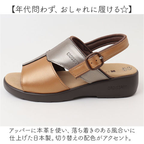 クロワッサン レディースサンダル CR4599【キャメル/コンビ】【S(約21.5-22cm)】