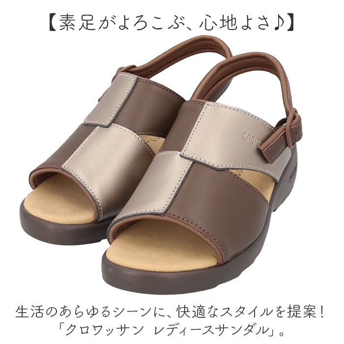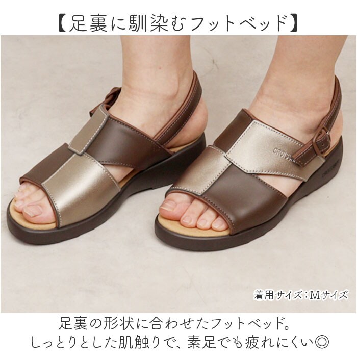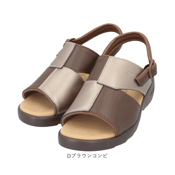 クロワッサン レディースサンダル CR4599【キャメル/コンビ】【L(約23.5-24cm)】