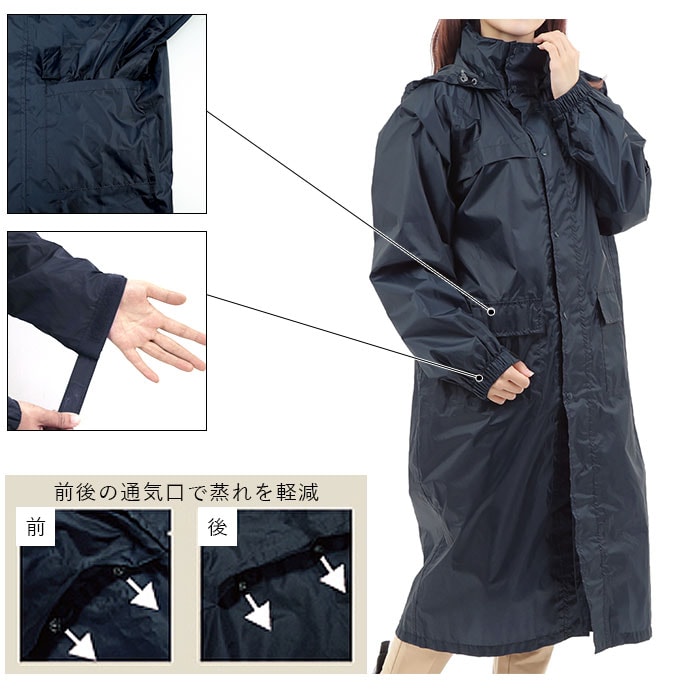 | 商品説明 | 雨の日の自転車に大活躍、防水サイクルベンチコートが発売。自転車乗車時に前ボタンを外すと、大型の三角マチが広がるのでひざ下が濡れにくいのがポイント。男女兼用なので家族で使いまわせるのがうれしい。フードは収納ポケット付き、フード口や袖口に調節機能が付いているので自分サイズにアレンジ可能。内側がメッシュになっているので通気性がよく快適。背面に反射テープがついているので夜道も安心。両サイドのポケットもフラップ式で濡れにくい。大きな収納袋付きなのでいつでも保管・携帯ができる。 |