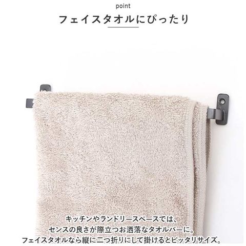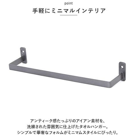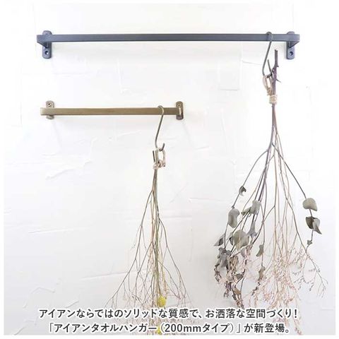 | 商品説明 | アイアンならではのソリッドな質感で、お洒落な空間づくり!「アイアンタオルハンガー(200mmタイプ)」が新登場。【手軽にミニマルインテリア】アンティーク感たっぷりのアイアン素材を、洗練された雰囲気に仕上げたタオルハンガー。シンプルで華奢なフォルムがミニマムスタイルにぴったり。【フェイスタオルにぴったり】キッチンやランドリースペースでは、センスの良さが際立つお洒落なタオルバーに。フェイスタオルなら縦に二つ折りにして掛けるとピッタリサイズ。【魅せるハンギング収納】S字フックと組み合わせてミニ観葉植物やお気に入りの雑貨を吊るせば、魅せるハンギングディスプレイに早変わり。【壁面収納で、アレンジ自在】玄関スペースではアンブレラハンガーやキーフックなど、アイディア次第でアレンジ自在。【D・I・Yで取り付け簡単!】壁面や建具にビスで2ヵ所固定するだけで、取り付けも簡単。(※ビス穴直径約4mm。取付用ビス2本付属。)【お部屋に馴染んで、すっきり空間】タオルバーを取り替えるだけで、空間がグッとおしゃれに。細身で圧迫感のないフレームデザインで開放的なインテリアを演出! |