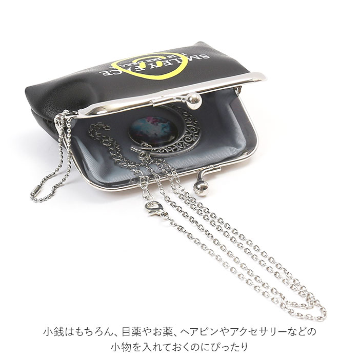 | 注意点 | 本来の用途以外には使用しないでください。商品を分解したり振り回す等の乱暴なお取り扱いはおやめください。事故や破損の原因となります。変形や変質、火災の原因となりますので、高温多湿な場所や火気の側でのご使用・保管はお避けください。開閉時に指を挟まないようご注意ください。本商品には一部突起していたり固い素材を使用している箇所もございますのでご注意ください。素材の性質により、摩擦、水濡れ等で色落ちやさびの原因となりますのでお取り扱いには十分ご注意ください。汚れた場合は乾いた布でおふきとりください。装飾品は強く引っぱると外れたり壊れたりする恐れがありますのでご注意ください。小さなお子様が取り扱う際は十分注意してください。カメラやモニターの性質により、画像と実物の色の違いがある場合がございますのでご理解願います。 |