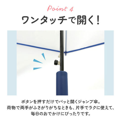 | 注意点 | 製品には尖った部分があります。常に周囲の安全を確認してご使用ください。ステッキがわりに使用しないでください。振り回したり、投げたりしないでください。傘骨の構造部に手を触れないでください。手元、または骨の先端が壊れたまま使用しないでください。無理に傘を開くと生地が絡んでいた場合など、骨や傘全体に負担がかかり、破損の原因となりますのでご注意ください。自転車運転中は使用しないでください。豪雨、強風時は破損する恐れがありますので使用しないでください。基準を超えた雨量によっては体内部に水が浸透する場合があります。傘生地は色落ちする場合もありますので乾燥が充分でない傘を、服その他に接触させないでください。使用後は必ず陰干しをして乾燥させてください。グラスファイバーはガラス繊維です。素材の特性上、繊維のトゲが刺さる場合がございますので、キズ・ささくれなどの箇所には直接、手で触れないようにご注意ください。カメラやモニターの性質により、画像と実物の色の違いがある場合がございますのでご理解願います。 |
