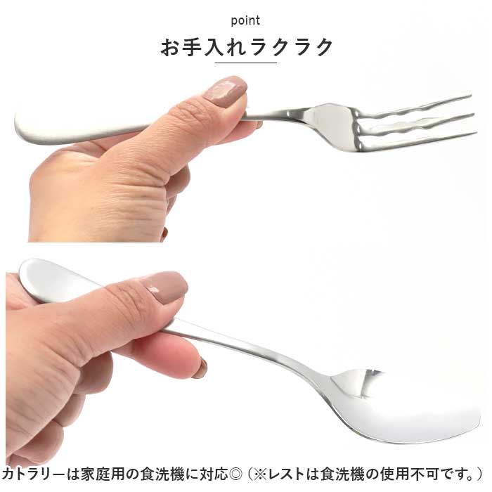 | 素材 | [スプーン、フォーク]ステンレス [カトラリーレスト]ポリストーン |